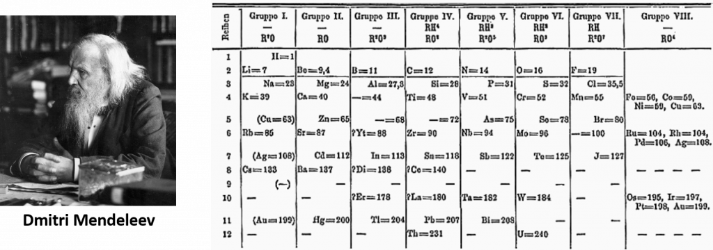Figure 2.3: Dmitri Medeleev’s 1871 Early Version of the Periodic Table