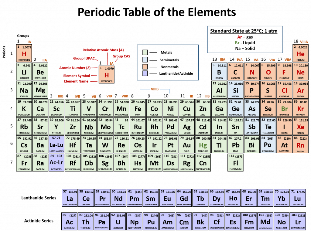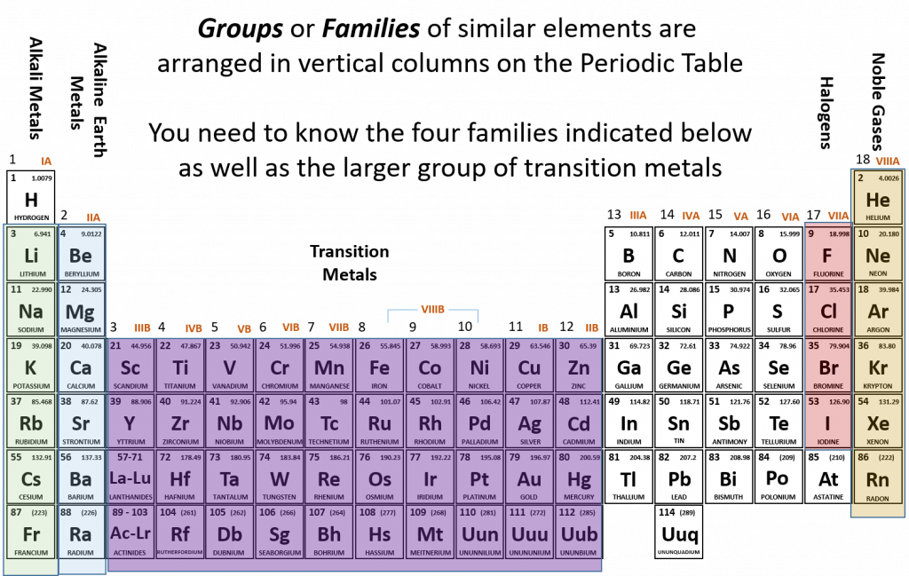 Figure 2.4 Common Families and Groups of the Periodic Table.