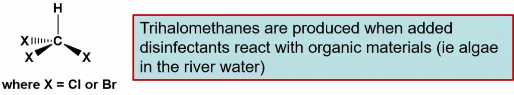 Analysis of the water initially showed high levels of fecal coliform bacteria, which caused Flint, MI to issue boil advisories and to increase the amount of chlorine being used to treat the water. This in turn increased the production of trihalomethanes. Trihalomethanes form during a reaction of chlorine disinfectants in the water with organic materials that are present, such as those created by the algae present in the Flint River. Trihalomethanes have been linked with many health concerns, including liver, kidney and lung problems and also create foul smelling and tasting water. They are also dangerous when inhaled, making showering in hot, contaminated water a serious health risk.