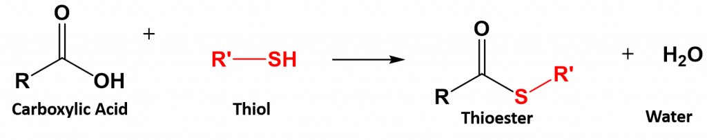 The dehydration reaction needed to form a thioester is shown below: