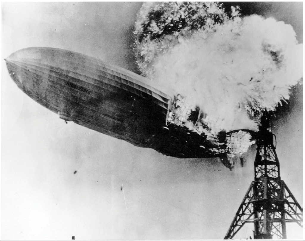 Figure 5.2 Chemical reactions can be violent in nature. When exposed to a spark or a flame, hydrogen and oxygen react violently to form water. Here the hydrogen gas in the zeppelin, SS Hindenburg, reacts with the oxygen in the air to make water.