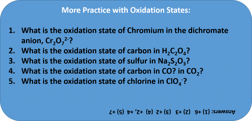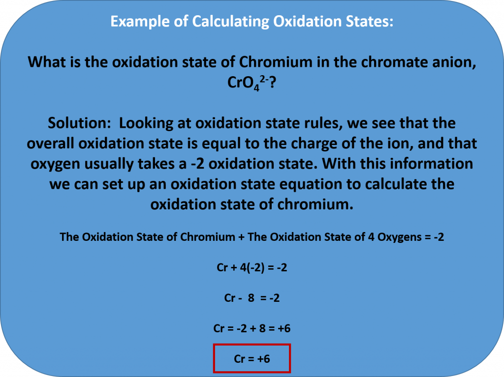- The oxidation states of other atoms are calculated based on rules 1-7.