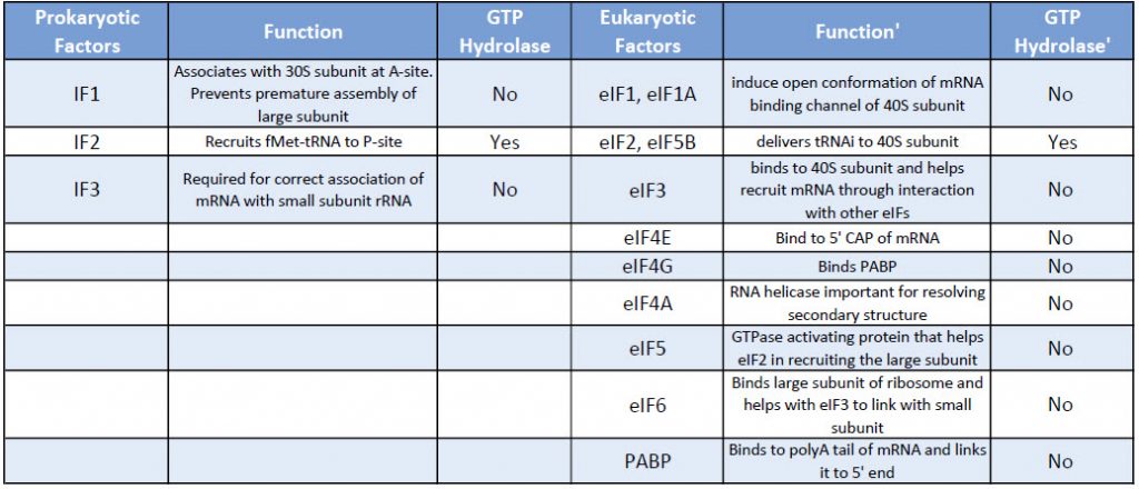 Table 11.1 Comparison of Prokaryotic and Eukaryotic Translation Initiation Factors