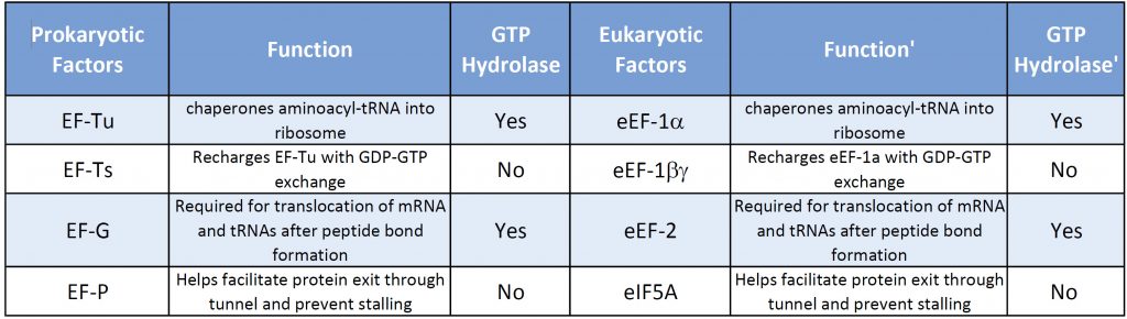 Table 11.2 Comparison of Prokaryotic and Eukaryotic Translation Elongation Factors