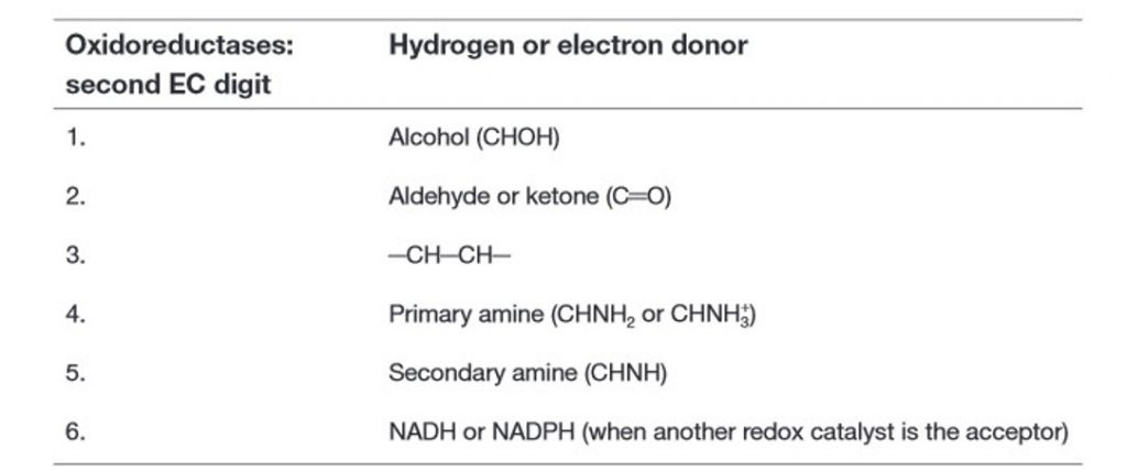 Table 6.3 Enzyme Classification: Secondary Classes of Oxidoreductases in the EC System