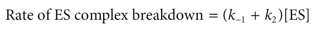 The rate of formation of the ES complex and the rate of its breakdown must therefore balance, where: