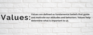 Personal values are things that are important to us. They are what motivates our own characteristics and behaviors, and they are what guides our decision making. Each person needs to be able to know what their core personal values are. Do you value honestly? Integrity? Loyalty? Learning about your own values offers you the ability to apply the values in your everyday life.