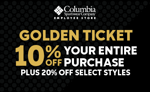 WOU Alumni, Faculty, Staff & Student Discount at the Columbia Store: Receive 10% off your entire purchase at the Portland Columbia Store Nov. 1-24. Show the Golden Ticket image at the store!