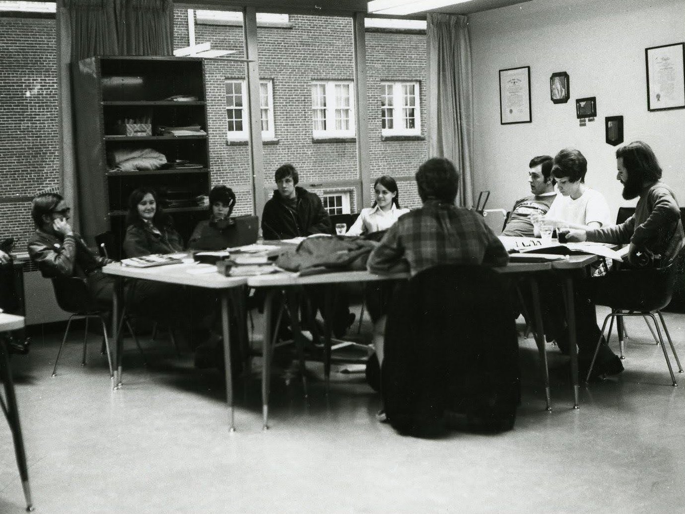 This picture was taken around where the current Multicultural Student Service and Programs Office resides. Pre-construction of the office, the area was called the Oregon Room. Notice the fireplace that still stands just outside the MSSP office.