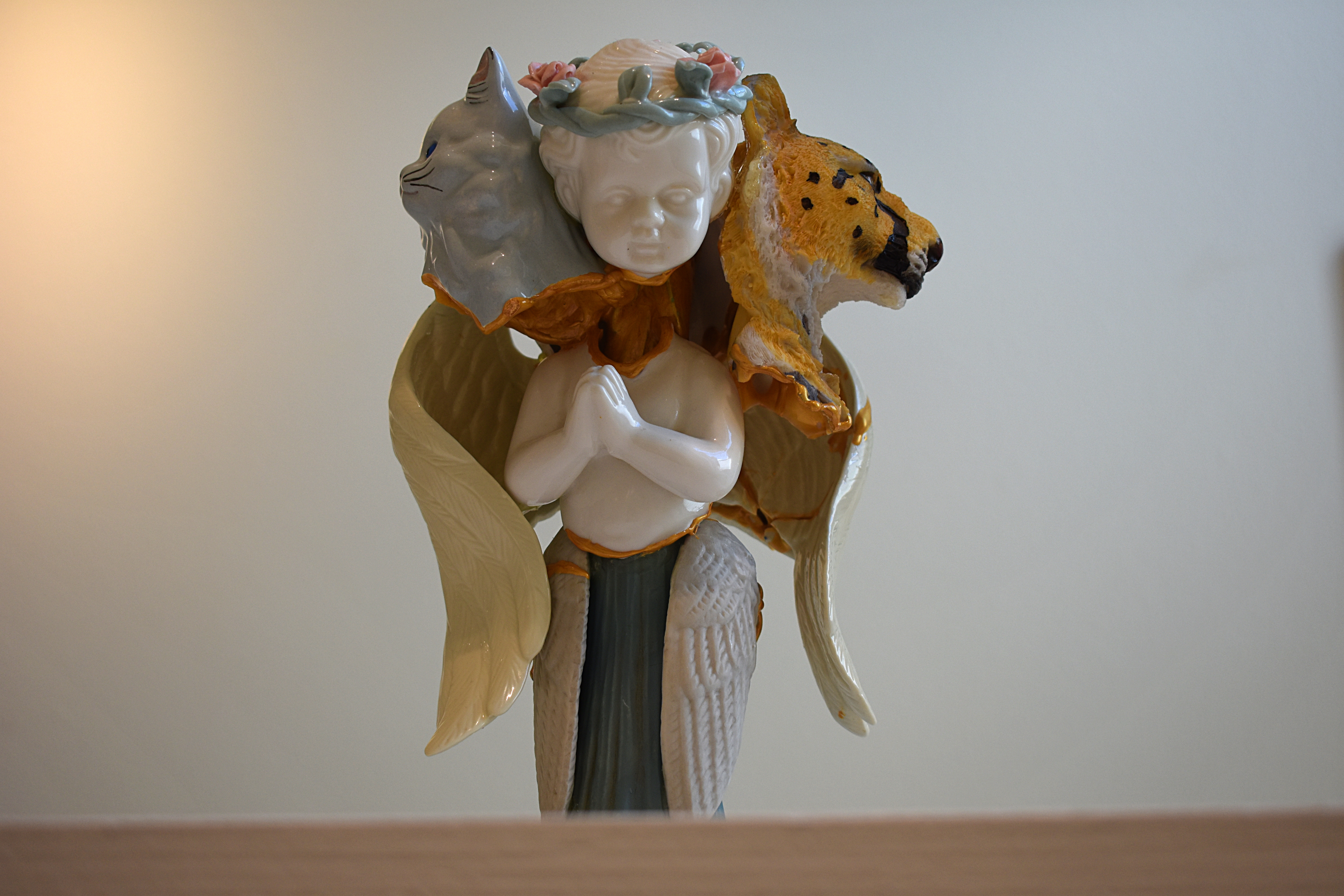 Graduate student Genvieve Hardin has two pieces in the gallery, sculptures “D20” and “Be Not Afraid.” Hardin is in the Master of the Arts in Teaching program, and has expressed her excitement for having her work in the ITC gallery.