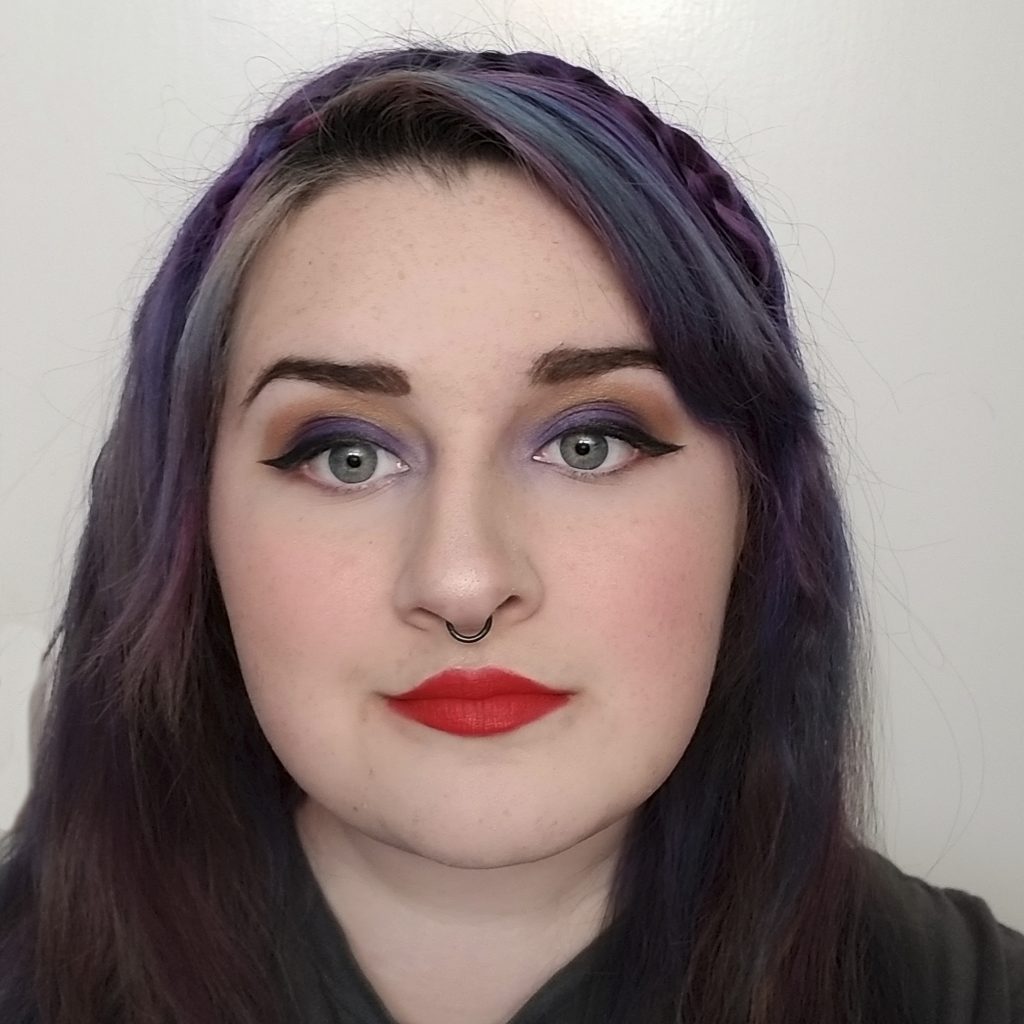 This is my first experimentation with warm-toned eyeshadow. What started as a fun, bright orange soon turned smokey with a touch of dark brown. Using a bold lip can help balance out the darkness of this look.