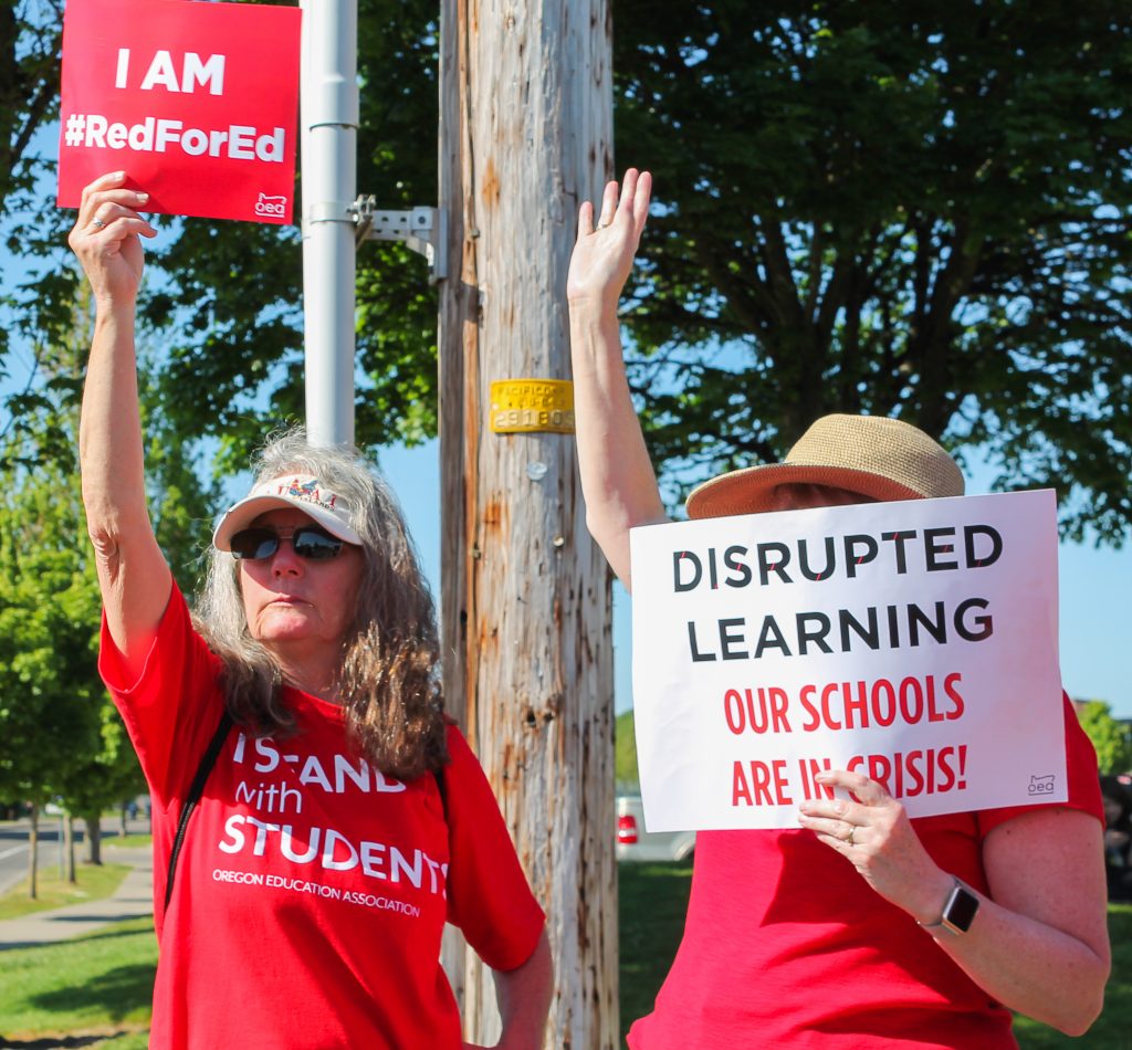 Rising early, joining together and donning red shirts, Oregon educators in Portland, Salem, Eugene, Medford, Bend and Klamath Falls made a statement on May 8, 2019. With thousands of teachers, students and community members going out into their neighborhoods throughout the state, their message was clear: pass the Student Success Act.