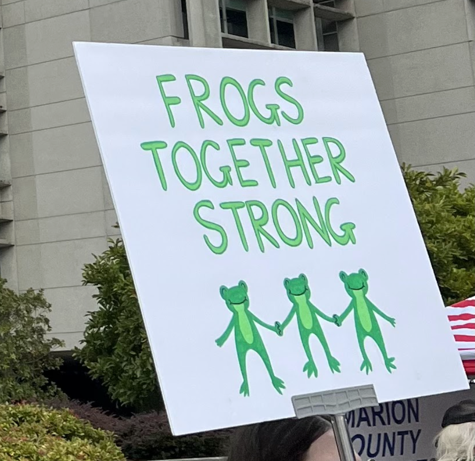 Caught on camera and uploaded to TikTok, a whirlwind of media attention pointed at Todd, dubbing him with various names: “Antifa Frog,” “Portland Frog” and “Protest Frog” being some of the more common aliases. In his wake, more frogs showed up the following evening at the facility in support. Later in the month, numbers doubled and tripled as frogs took to the streets, spanning Oregon’s multitude of protests.