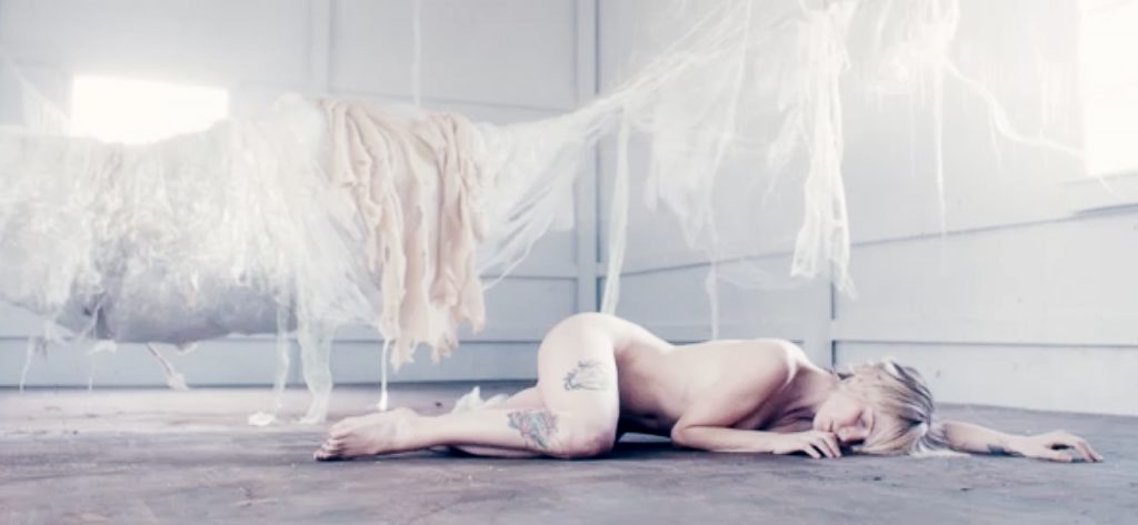 “Simmer” is Williams first song on the album. The video features her running through the woods, being chased by something that is not quite visible. She has a light in her chest that is glowing and she seems to be protecting it, naked and vulnerable, she hides behind trees and sings about the dark rage that is “simmering” inside of her.