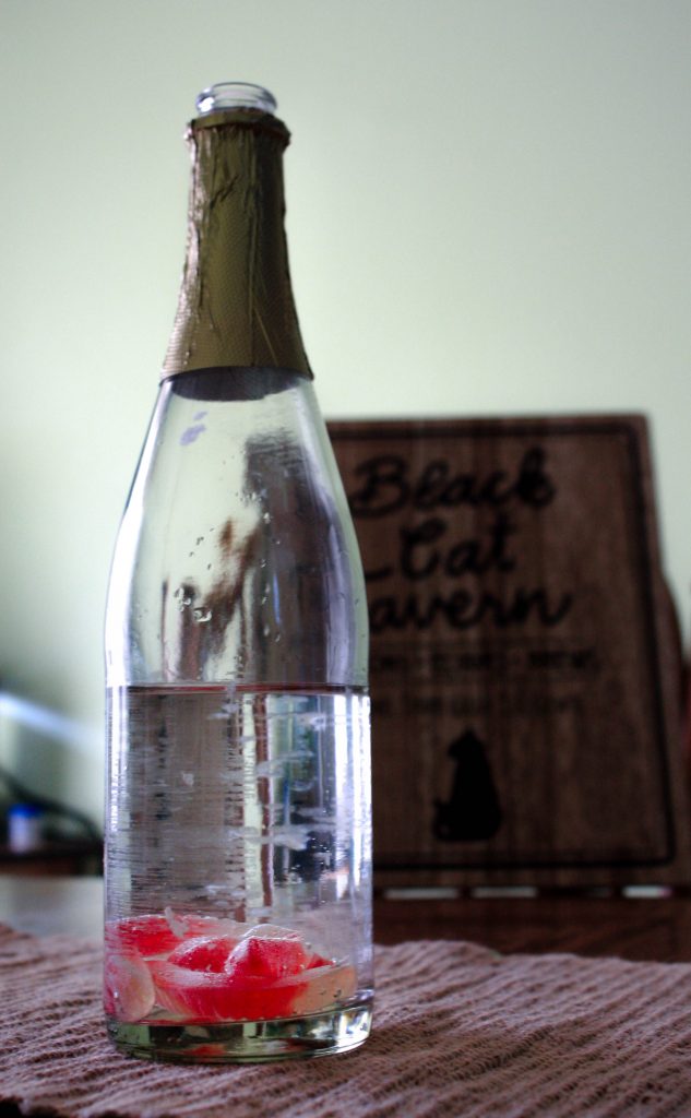 Make some witch’s potions to set on a windowsill, at the front door or just miscellaneously around the house. Start by taking any old, preferably glass bottles lying around, such as a wine, cider or seltzer bottle. Fill the bottle with some sort of liquid — water dyed a different and/or unnatural color, juice, or something carbonated to give the potion a bubble-bubble-toil-and-trouble look.