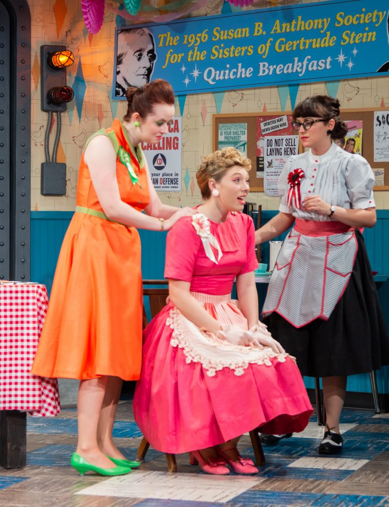 Set in 1956, in a community center basement-turned-bunker, this sapphic comedy follows a group of “widows” who call themselves “The Susan B. Anthony Society for the Sisters of Gertrude Stein.” The occasion: an annual quiche breakfast/bake-off.