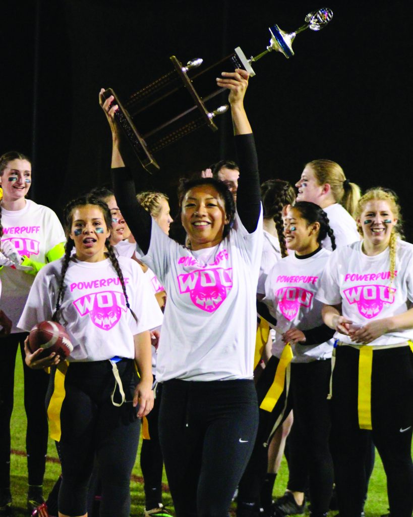 For the 2018 Homecoming week, the ladies were the first to step foot on the gridiron for the Wolves. The 39th Annual Powerpuff Game: Wolfie’s bowl was gearing up to be a powerful start to this year’s homecoming football festivities. With female students lining up for the On-Campus team and Off-Campus team, this year’s participants were ready for a fight.